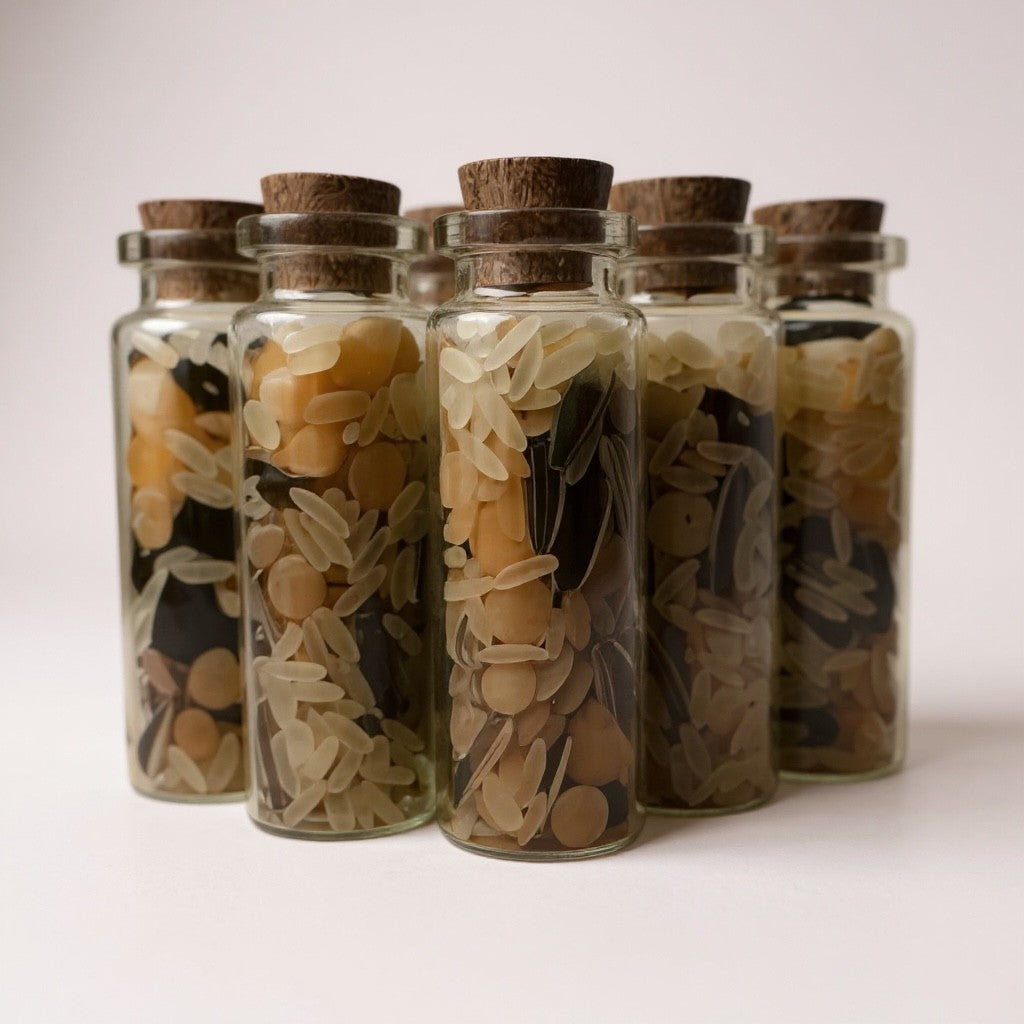 Este poderoso Amuleto de Sorte e Atração Financeira é cuidadosamente preparado com uma seleção de grãos, sementes e ingredientes simbólicos (como arroz, lentilha, e sementes de girassol, conforme a foto) que representam a fartura, o crescimento e a riqueza.